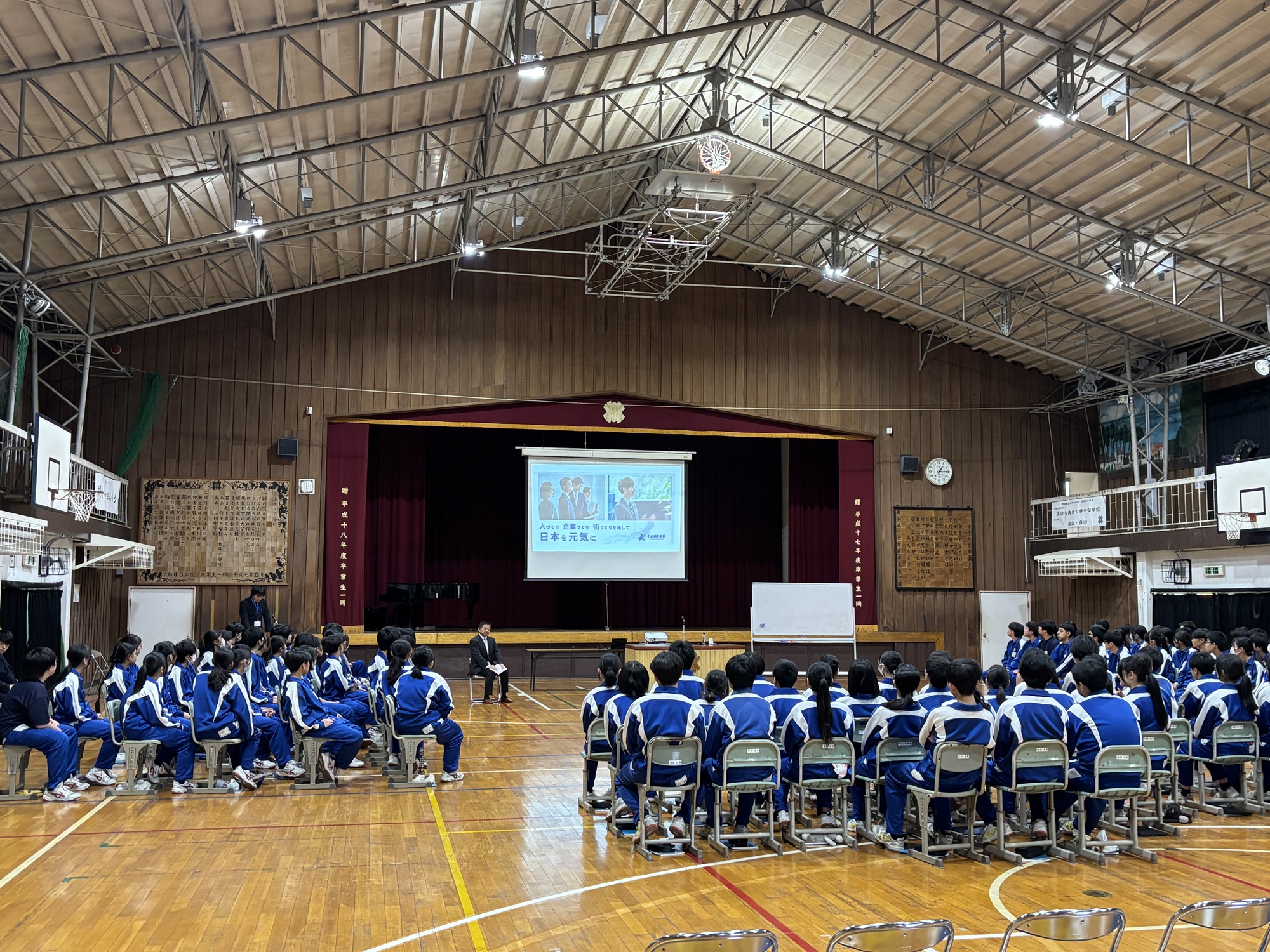 全校生徒約150名と先生方20名に向けて講演をしました。