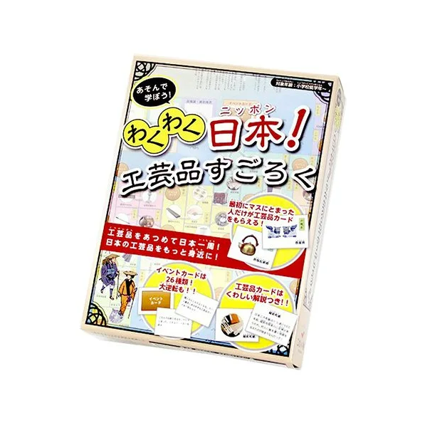 「わくわく日本!工芸品すごろく」は、日本全国の伝統工芸品を集めながら、日本一周を目指すすごろくです。60種類の「工芸品カード」を集めながら、歴史や文化にも親しむことができます。